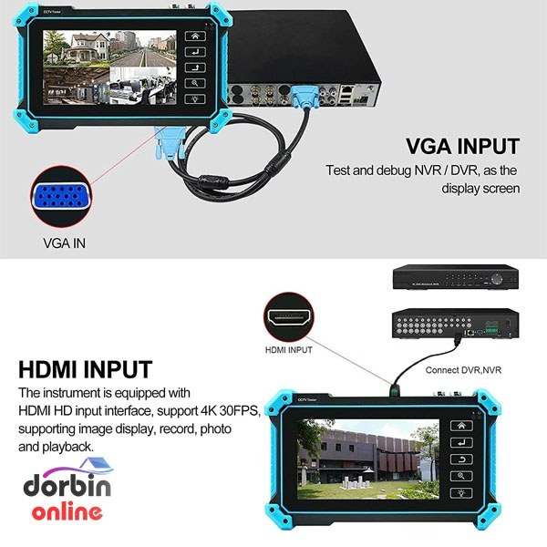 تستر IPC-5100 PLUS دارای خروجی و ورودی HDMI است که به شما امکان میدهد تصاویر را روی نمایشگرهای بزرگتر مشاهده کنید. این ویژگی برای بررسی کیفیت تصویر و تنظیم دقیق زاویه دوربین بسیار کاربردی است.